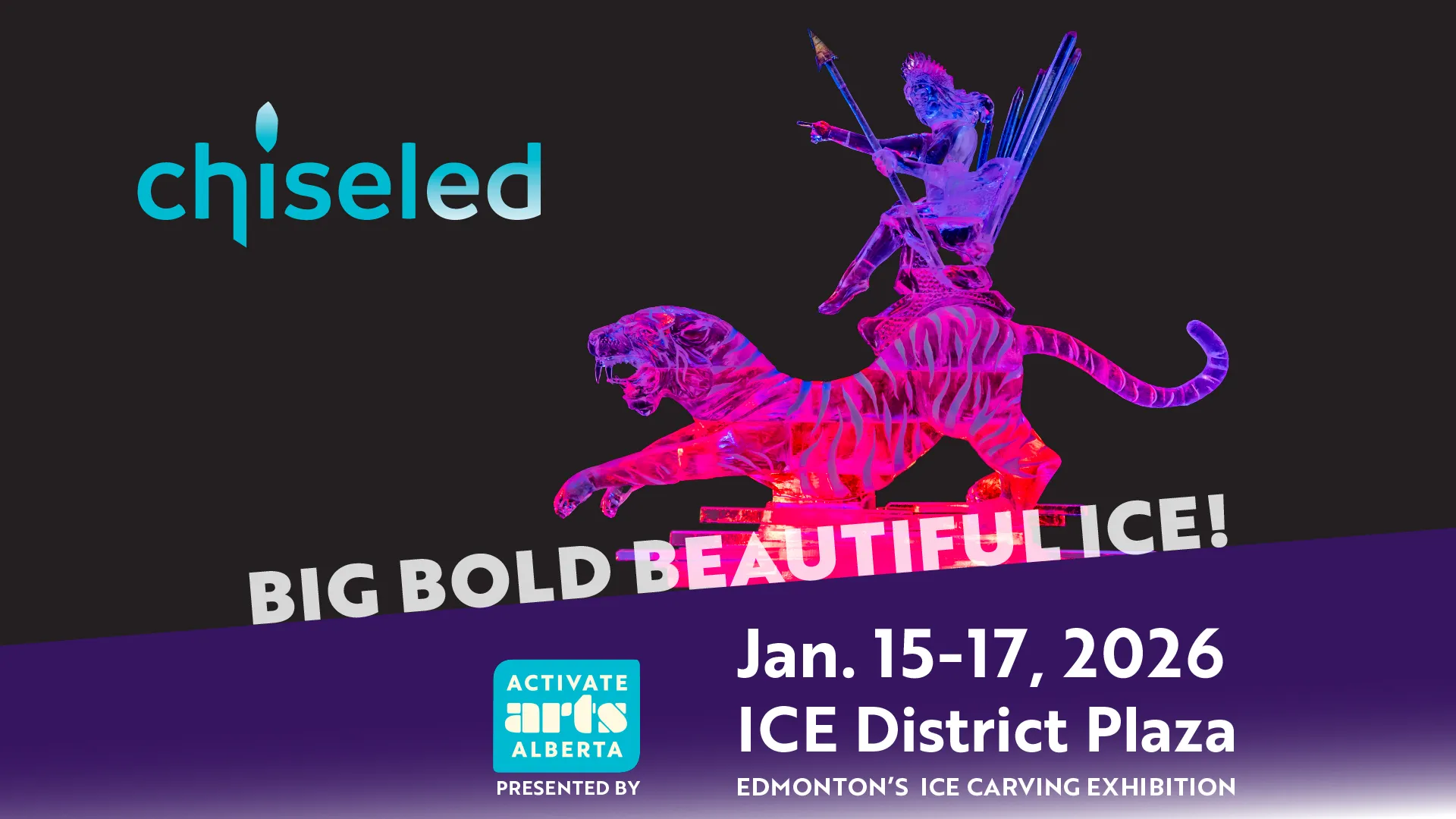EDMONTON, AB — Activate Arts Alberta, formerly known as the Ice on Whyte Festival Society, is pleased to announce the return of Chiseled – Edmonton’s Ice Carving Exhibition, taking place January 15–17, 2026, in the ICE District Plaza.